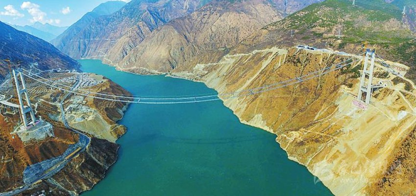 興康特大橋由四川省交投集團投資、四川路橋集團承建,是一座建設在高海拔、高地震烈度帶、復雜風場環(huán)境下的超大跨徑鋼桁梁懸索橋。全橋長1411米,主跨長1100米,為四川第一跨徑懸索橋。因其施工難度大,建設中要克服很多世界難題,也被稱作“川藏第一橋”。