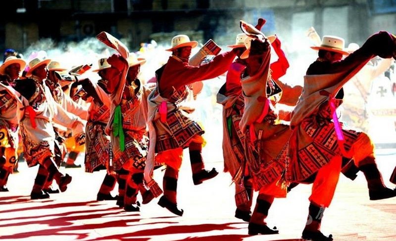 鍋莊有較嚴(yán)格的程式,首先由老年領(lǐng)舞、獻(xiàn)酒和哈達(dá)。鍋莊舞開始后,由男隊(duì)領(lǐng)頭,中、老年女隊(duì)隨后,青年女子最后。男隊(duì)領(lǐng)舞者必須是德高望重、能歌善舞的長輩,整個舞蹈過程中以他為指揮。鍋莊組織者排在第二位,主要是領(lǐng)唱。男女兩隊(duì)圍繞中心反復(fù)旋轉(zhuǎn),呈現(xiàn)多種隊(duì)形,其中以嘉旋圖(八卦旋圖)隊(duì)形最具特色,造形十分優(yōu)美。